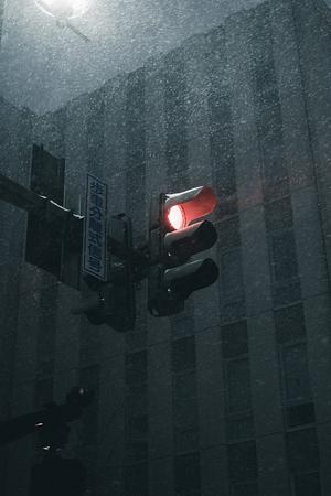 traffic light in the snow